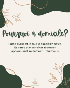Depuis quelque temps, j’interviens aussi directement au domicile des Familles. C’est une demande qui se fait de plus en plus, même si j’en parle peu ici et c’est volontaire.